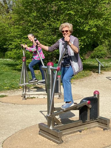 Heute hat unsere Rollator-Ladie uns Bewegung im Sitzen auf der Bank gezeigt. Mit der Hand und ausgestreckten Beinen die Fußzehen berühren. Sie war die Einzige die es konnte. Von den anderen Übungen (Radfahren im sitzen!)reden wir erst gar nicht.