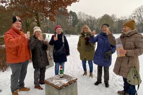 Kleiner Umdrunk im Schnee, das hat doch was. Die älteste war heute 84 Jahre und wir waren zu acht, zwei entschuldigt. Es wollen nicht immer alle aufs Foto! Man braucht sich nicht anmelden, ist einfach mit guter Laune dabei und es macht viel Freude.