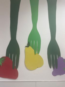 Ein Teil unserer neuen Wanddekoration. Besondere Höhepunkte in den letzten Wochen waren Aufmerksamkeiten der Kinder in Form von Bastelarbeiten, frühlingshafte Dekorationen.