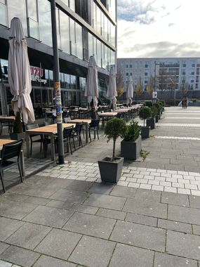 Gastronomie schützt mit Schirmen vor Hitze… auf dem Riedbergplatz!