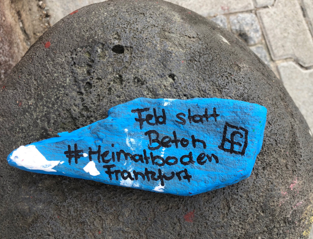 BUND und die Bürgerinitiative Heimatboden Frankfurt und andere Organisationen sowie einige Parteien sind ebenfalls dagegen.https://www.heimatboden-frankfurt.de/ und https://www.bund-frankfurt.de/stadt-und-landschaftsplanung/stadtplanung-im-frankfurter-nordwesten/