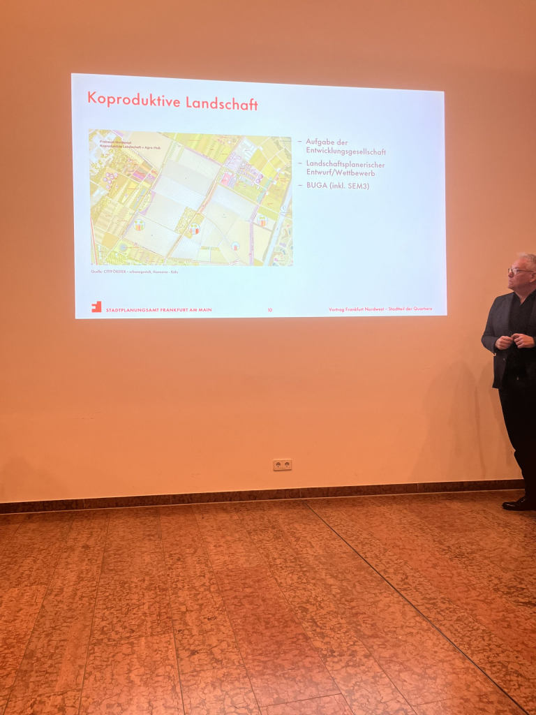 Die koproduktive Landschaft ist ein zentrales Konzept für den neuen Stadtteil Frankfurt Nordwest, das Landwirtschaft, Naherholung und Naturschutz westlich der A5 verbindet. Sie fördert eine nachhaltige Kreislaufwirtschaft, in der Landwirte, Kollektive und Bürger die Flächen gemeinschaftlich nutzen. Es entsteht ein multifunktionaler Grünraum, der Nahrungsmittelproduktion (urbane Landwirtschaft) mit Freizeitaktivitäten und ökologischer Aufwertung verwebt.
